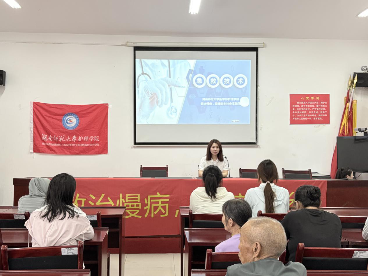 健康宣教活动注重实效性与亲和力。队员们带着自编的《慢性病防治手册》,走进农家开展“炕头健康课堂”。针对老年群体,用方言耐心讲解高血压用药规范,纠正"凭感觉服药"的误区;面向儿童及家长,则重点普及防溺水知识、心理健康及简易急救技能。急救技能培训环节,团队采用“理论+实操”模式,分步骤演示海姆立克急救法和心肺复苏技术,将专业医学知识转化为村民听得懂、学得会、用得上的实用技能。