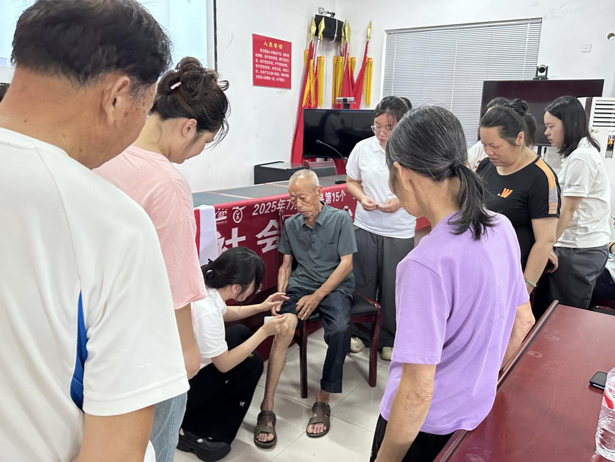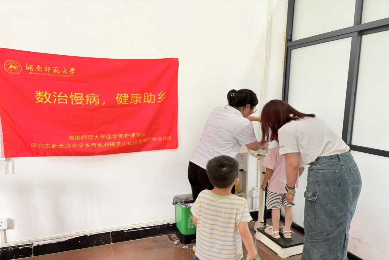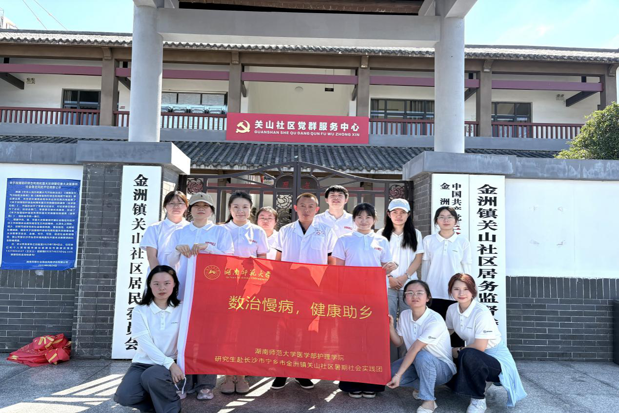 2025年7月25日至8月4日,大发官方· (中国)官方网站,护理学院“数治慢病,健康助乡”暑期社会实践团在学院老师们的指导下,赴长沙市宁乡市金洲镇关山社区开展为期10天的社会实践活动。团队由12名护理硕士研究生组成,以慢性病数字化管理为核心,通过义诊、健康宣教、基层调研等形式,为乡村健康赋能。
