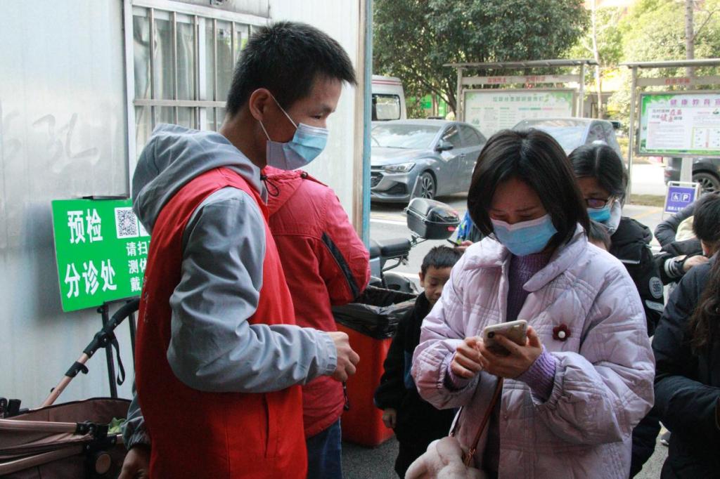 志愿者们被分为两组在社区医院工作人员的指导下有序开展工作。第一组志愿者在出入口测量体温,同时查看健康码、行程码。起初,面对病人诸多、老年人独自前来就诊等问题,志愿者们也会手足无措,但是在过程中,他们慢慢熟悉流程并针对不同人群采取不同措施,重点关注老年人与小朋友的就诊与安全问题,大大提高了工作效率和居民满意度。第二组志愿者主要负责协助新冠疫苗的接种,即使未成年人接种疫苗的手续相对复杂,志愿者们也在一次次指导中熟记流程,耐心指导家长扫码预约、填写同意书,尤其是对于老人携带小朋友前来接种的情况。周末加之以未成年人接种的开放,医院人满为患,志愿者们在维持队伍秩序的同时,尽力解决满足居民诉求,耐心解释居民问题,并确保所有携带小孩接种的家长都填写好纸质同意书,减轻接种医生的工作量。