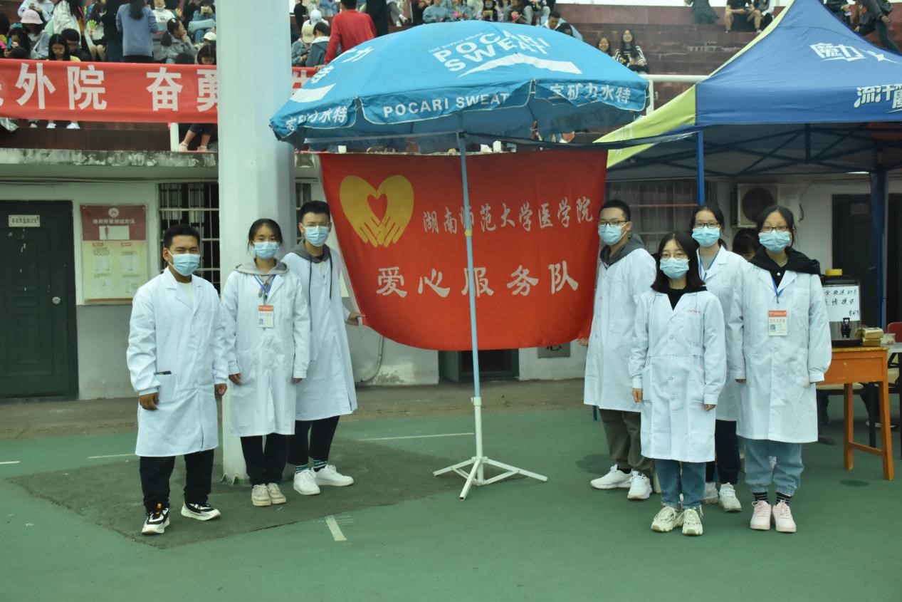 爱心服务队的成员与此次活动的相关负责人在活动前了解了相关注意事项,做好医疗准备工作,在医疗点静候,为有需要的运动员提供及时的帮助。运动会期间,爱心服务队的成员主要负责照顾伤病运动员,他们有的搀扶在运动过程中受伤的运动员前往医疗点处理伤口,有的为运动后低血糖的运动员递上红糖水等补充能量的食物,或是在田径场穿行,关注赛场上的一举一动,为运动员的健康保驾护航。