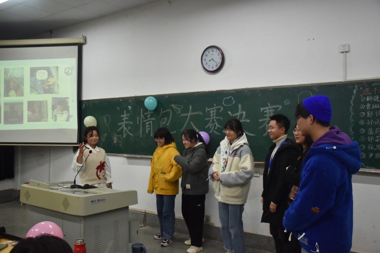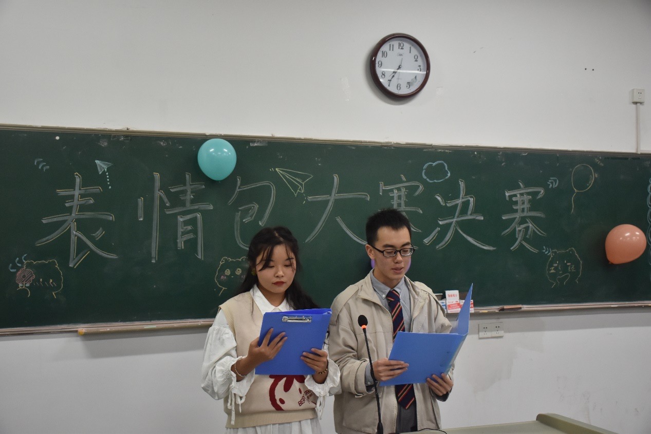 主持人刘溪小、严可涵简单地介绍活动背景之后,宣布此次表情包大赛正式开始。比赛选手以每组五人为单位依次讲述自己的创作灵感以及表情包背后的故事。参赛作品大多数是同学们在日常生活中的抓拍和截屏,无论是夸张的表情,还是人物与环境之间形成的错位,都是独具匠心,风趣幽默。比赛间隙,为了活跃赛场的气氛,刘溪小和严可涵邀请了部分观众上台参与趣味小游戏。有“不让气球落地”的运动小游戏,也有“听曲猜歌名”的文艺小游戏。随着趣味小游戏的进行,赛场的气氛逐渐升温,气氛到达高潮。最后平面设计部工作人员组织现场观众进行实时投票,选出此次比赛的获奖者,比赛落下帷幕。