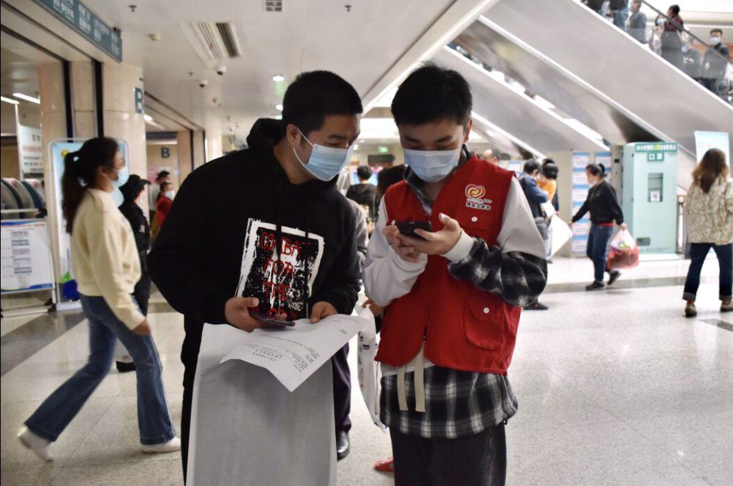 活动中,志愿者们在客服中心主任的带领下协助维持挂号收费秩序,营造一个文明有序的就医环境;帮助患者了解就医流程,指引患者到达就诊区域,为有需要就医者提供帮助;向患者宣传实名制就医,推广医院微信服务号预约挂号,指导患者进行网上操作;维持科室问诊的秩序等等。志愿者们用自己的努力传播生活正能量,用自己的行动主动承担起大学生的责任。